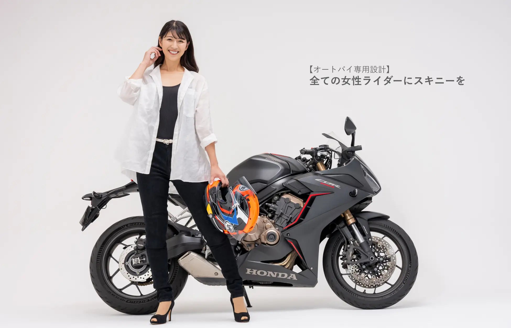 ◯女性ライダーの体型に合わせて選べる【ウエスト6サイズ】【股下2サイズ】「ブラックスキニー」を開発