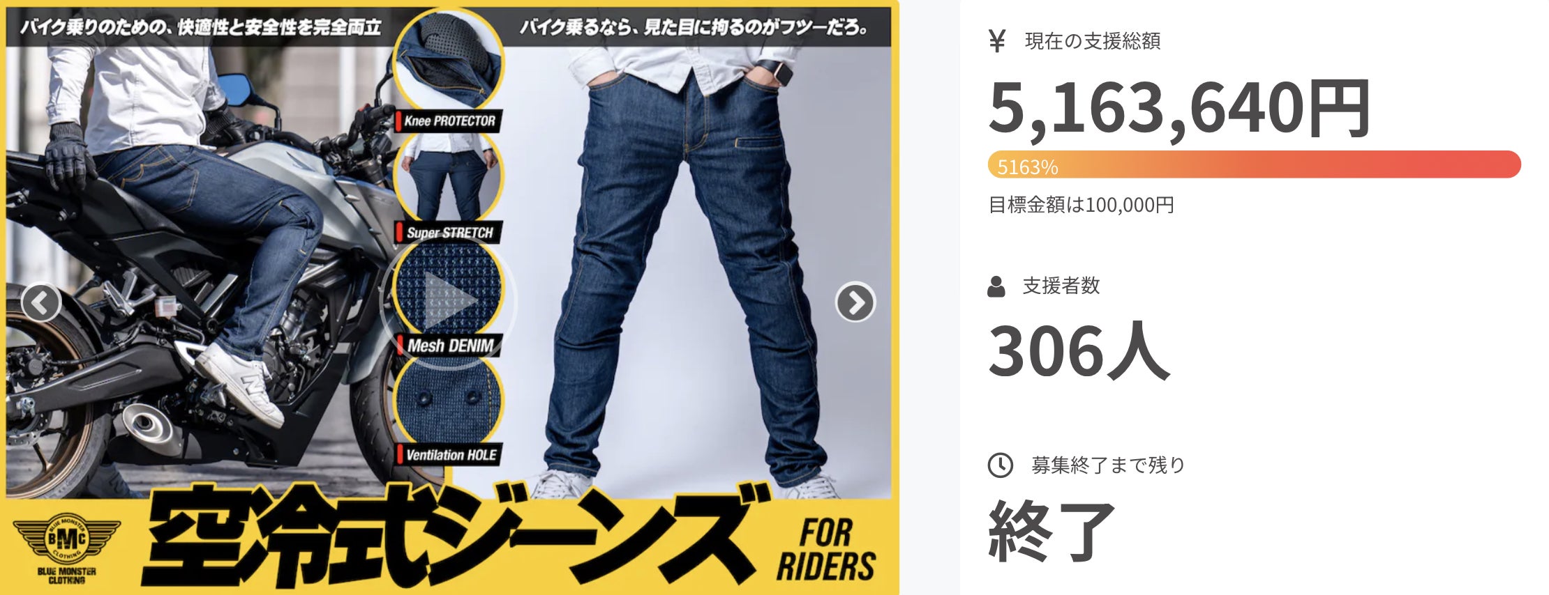 2026/03/28 20:00こちらの活動報告は支援者限定の公開です。【先行予約価格14,480円】エアインテーク空冷式ジーンズ 第一期先行予約受付中