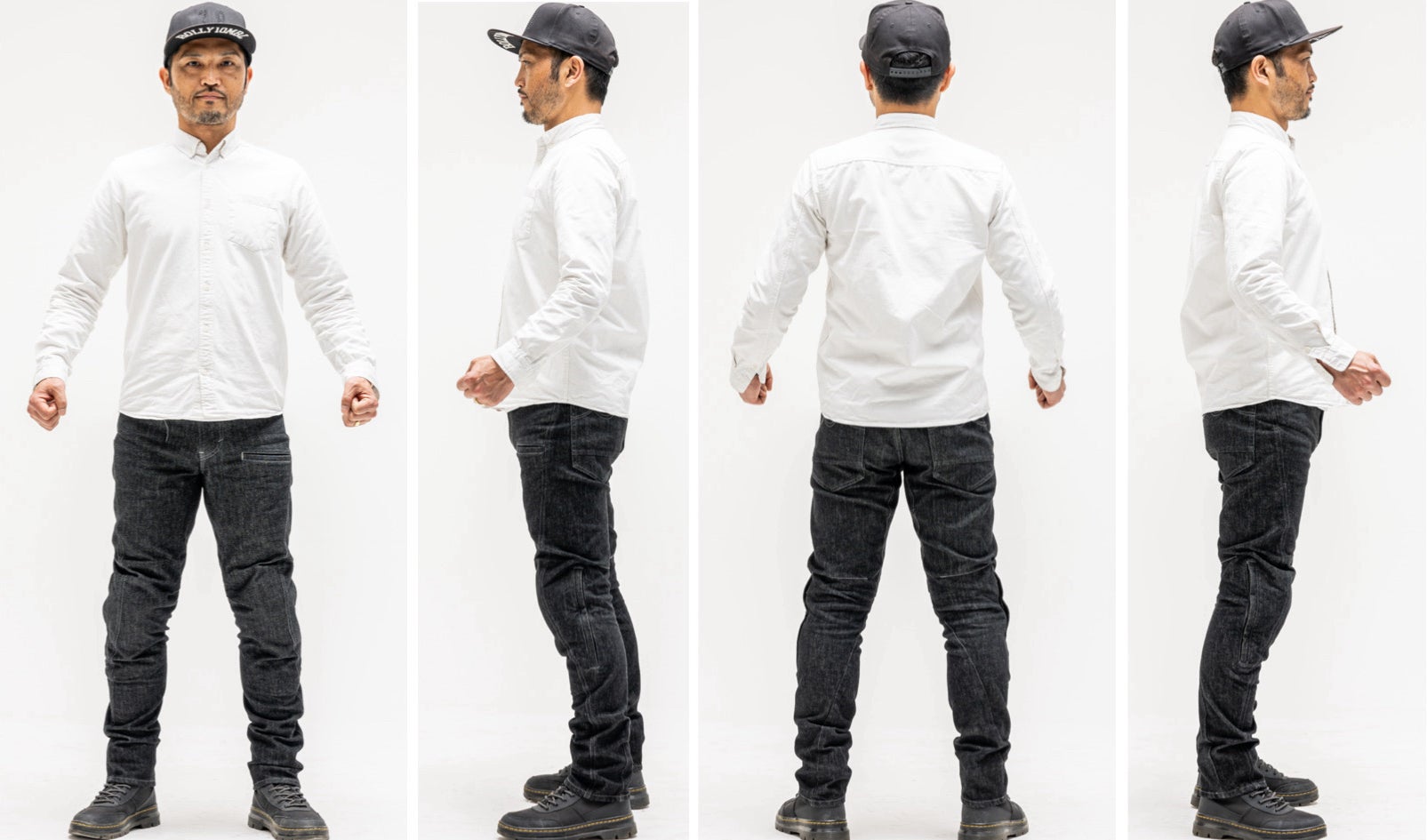 ライダー専用ジーンズとして最重要な事は・・・バイクに乗車した時に最適化されている事ですよ!