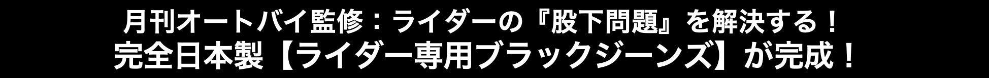 今回、ライダーからの強い要望である【股下問題】を解決する為に、『創刊100周年・月刊オートバイ編集部』監修のもと更にライダーに特化した完全日本製【ライダー専用ブラックジーンズ】が完成ました!