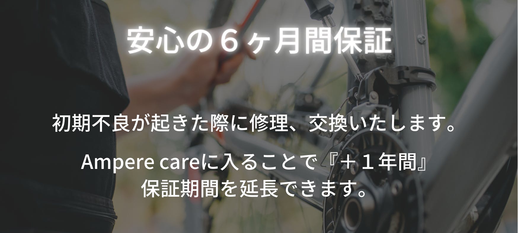 ・タイヤ、チューブ、ペダル、ブレーキなどの消耗品は保証対象外になります。