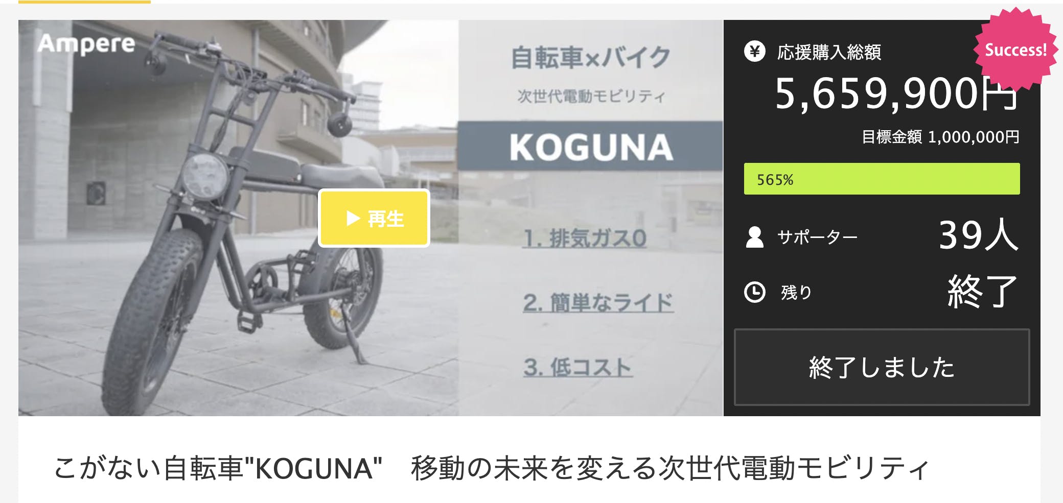 我々の最初のプロダクトである電動バイクKOGUNAはクラウドファンディングで500万円以上の支援を集め、自転車以上バイク未満の乗り物として、多くの人の心を動かしました。