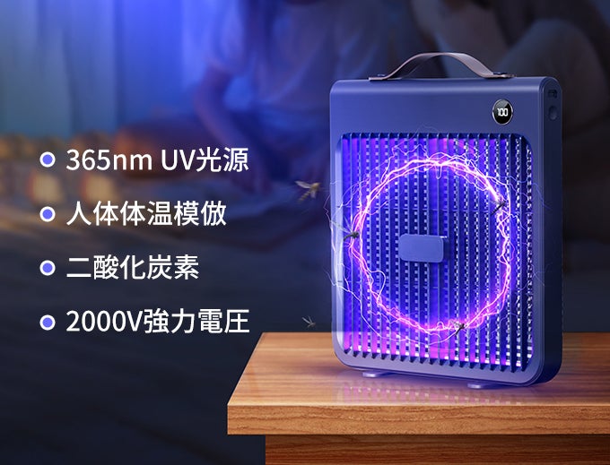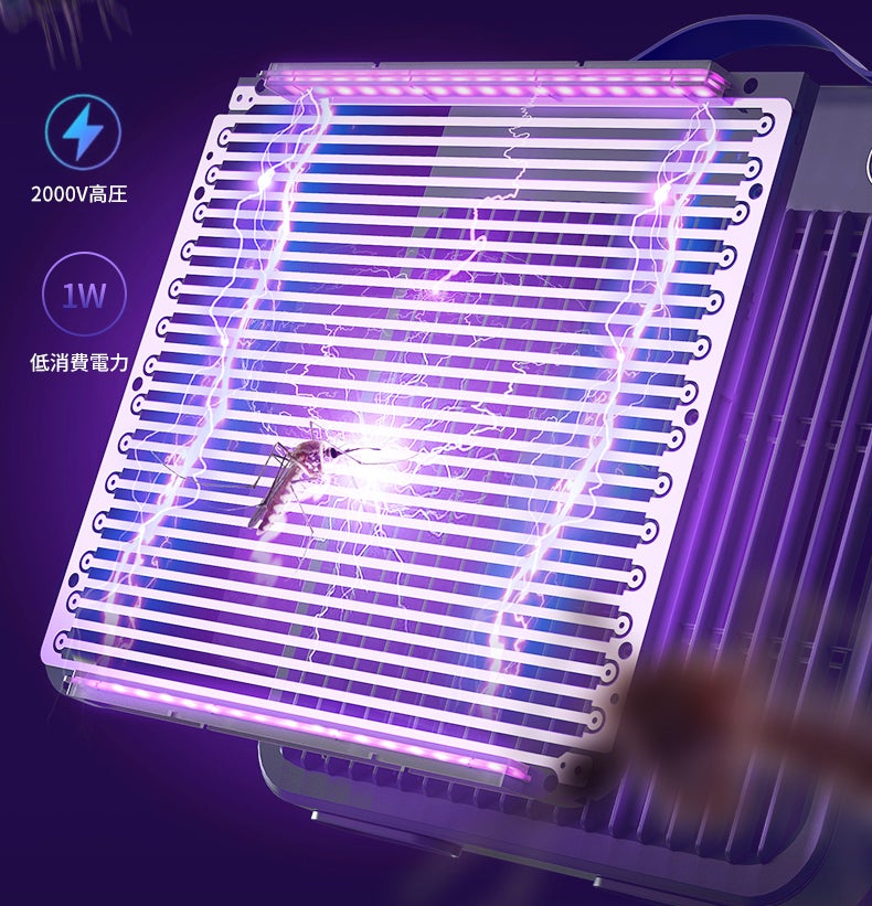 ■UV光源+人体体温模倣+二酸化炭素で蚊を誘引、高圧電網で瞬時に退治!
