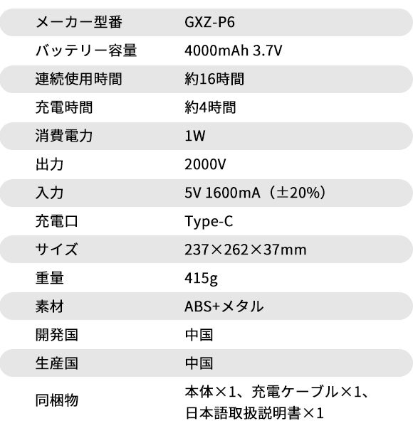 電撃蚊取り器「GXZ-P6」は、UV光源+人体体温模倣+二酸化炭素で蚊を引き寄せ、電撃で瞬時に退治する仕組みです。薬剤を使わないので、お子様やペットがいる家庭でも安心してご使用いただけます。