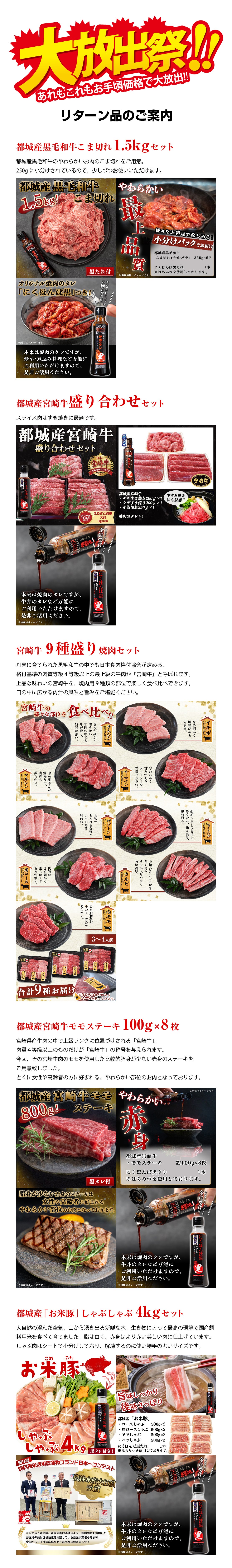 生産者の努力と情熱が詰まった宮崎牛と宮崎ブランドポークをお手頃な価格でお楽しみいただきながら、地域農業の持続的な発展にご協力いただければ幸いです。