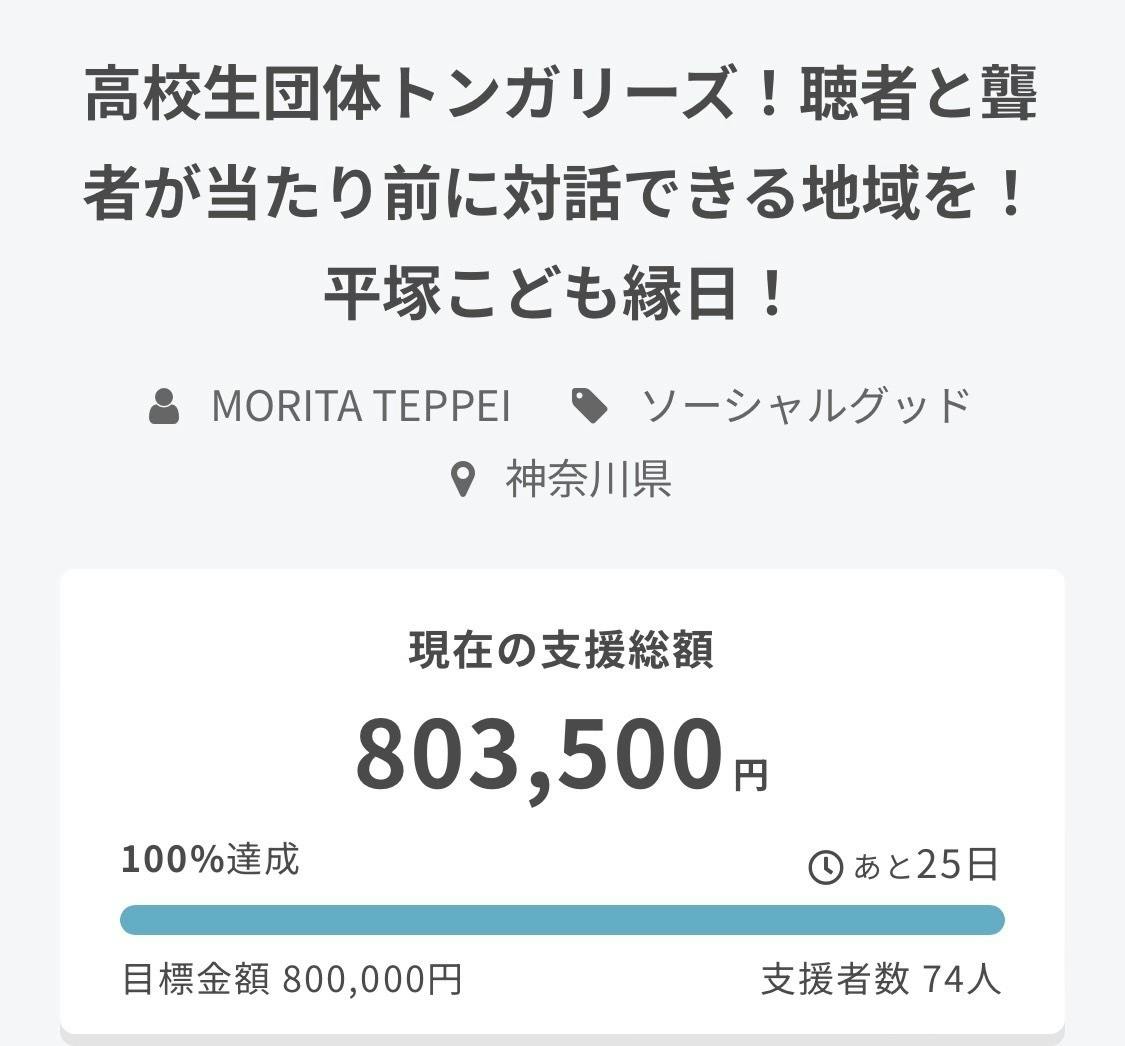 こうして温かいご支援集まり、区切りとしてファーストゴールを達成しましたこと、トンガリーズメンバー 一同、感謝申し上げます。