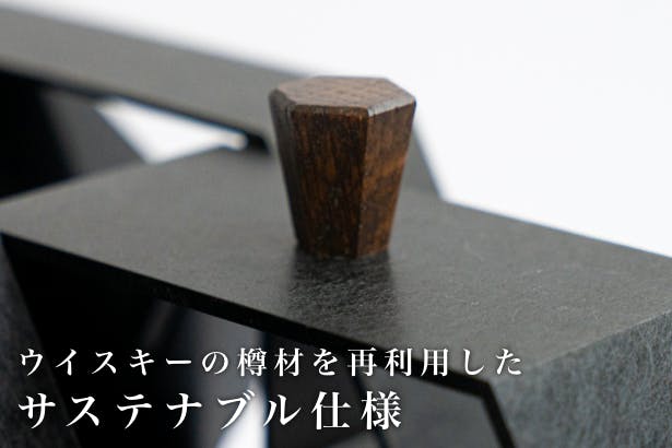 つまみはウイスキー樽のリユース材を使用、サステナビリティを大切にした製造を目