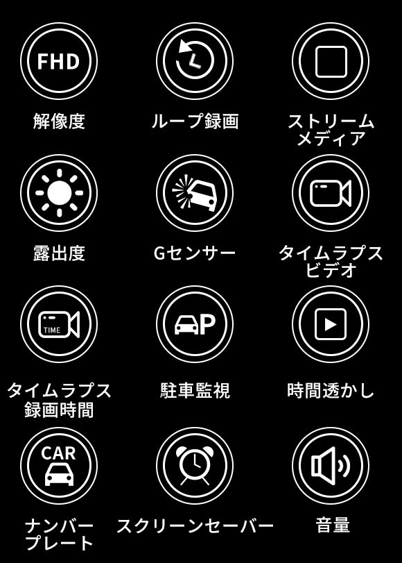 エンジンを切ってからも、「Anytek-Q8」に搭載されている24時間駐車監視機能(タイムラプス機能)が自動で起動し、約30分間の映像を1分間に圧縮して保存します。