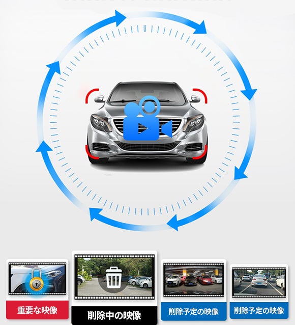 「Anytek-Q8」は自己衝突の前後映像を自動で保存しロックする機能を搭載しており、緊急録画モードで録画した映像は別フォルダに保存されます。