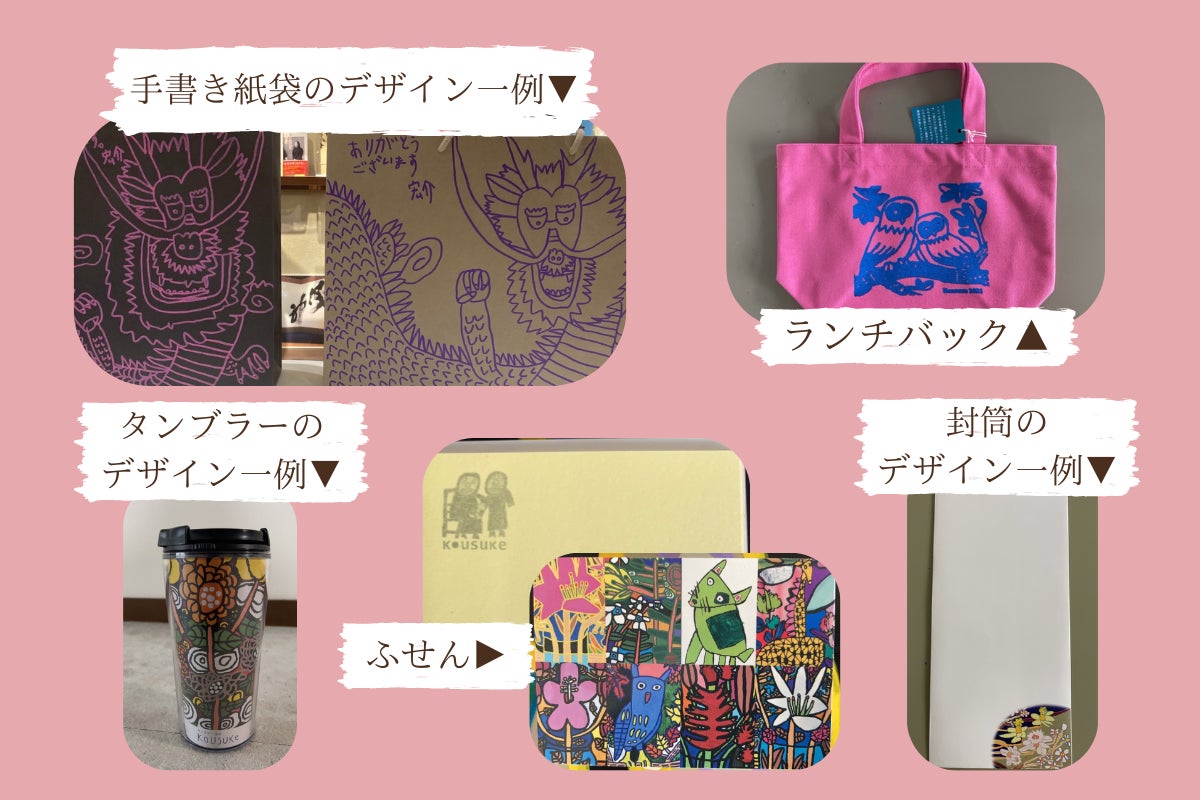普段個展会場でしか買えないグッズたちの詰め合わせを、宏介の手書き紙袋でお届け。