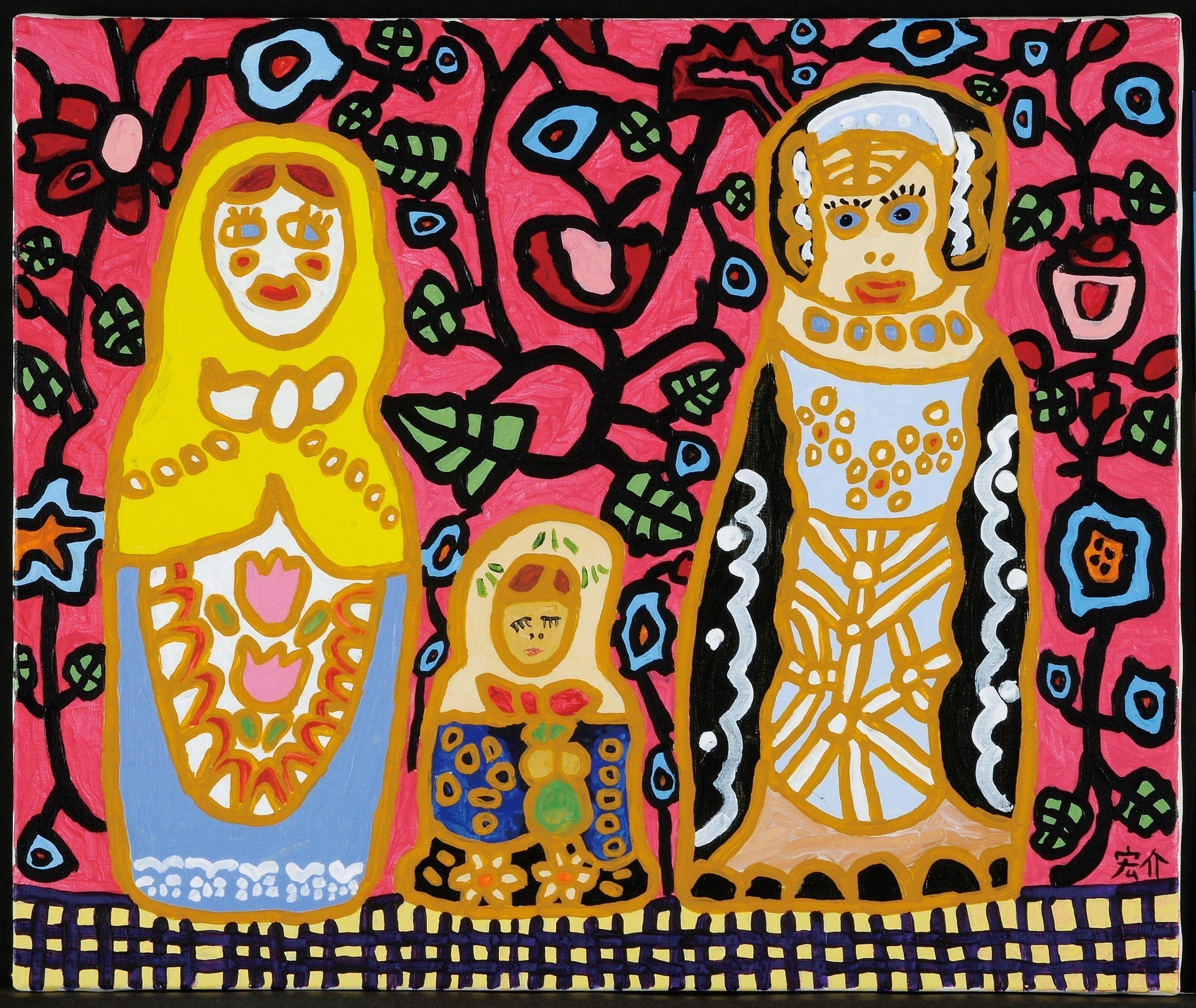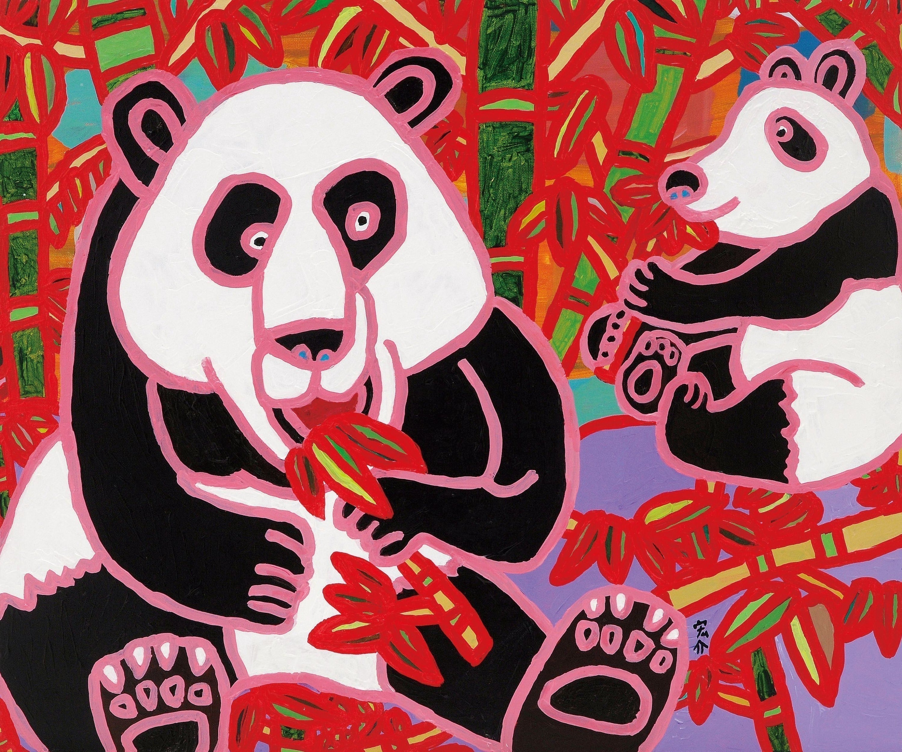 宏介の作品はすべて、多数の色を使うカラフルなものです。