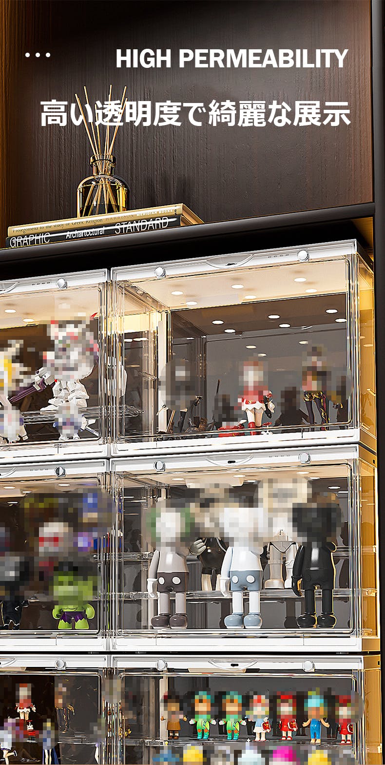 2023/06/27 16:19はじめまして。株式会社王道エンターテインメントです。LEDライト付き高透明度ディスプレイケースに興味を持っていただきありがとうございます。今回は、ディスプレイの案をいくつかご紹介したいと思います。▼本製品と付属品(仕切り板)のみでのレイアウト①仕切り板1枚(中段)②仕切り板1枚(中段)中段に仕切りを設置すると、2段に分けてCDを収納できます。▼本製品と付属品と100均アイテム①ディスプレイラックディスプレイラック + 仕切り板1枚(下段) + 仕切り板2枚(下に縦で置く)②ディスプレイラックディスプレイラック + 仕切り板2枚(下段 + 中段)中段の板にラックをかけることで奥行きを持たせられます。③ディスプレイスタンドディスプレイスタンド + 仕切り板3枚(全て下に置く)ケース内にディスプレイスペースと収納スペースを作れます。筆者は今回載せたレイアウトの中でこれが一番好きです。100均アイテムと組み合わせることで中身のレイアウトの幅が広がります!今回使用したものが下の2つです。ディスプレイラックディスプレイスタンド仕切り板にアイテムを追加すると様々なレイアウトを考えられて楽しい商品です。引き続き『LEDライト付き高透明度ディスプレイケース 』をよろしくお願いいたします! もっと見る