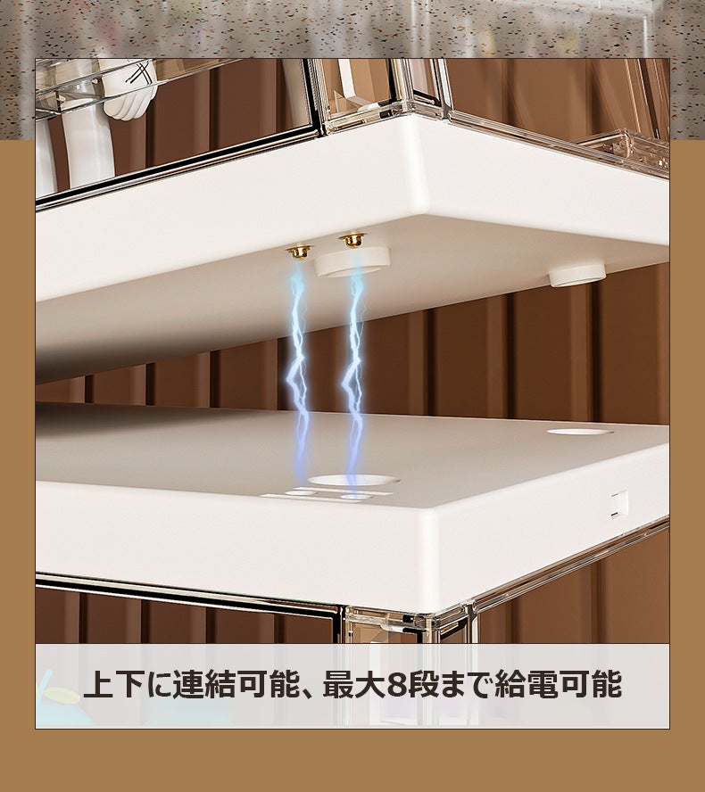上の画像では4段同士を横並びに配置しておりますが、実際の商品ではケースの側面に電源を差し込むため階段状の設置をお勧めいたします。