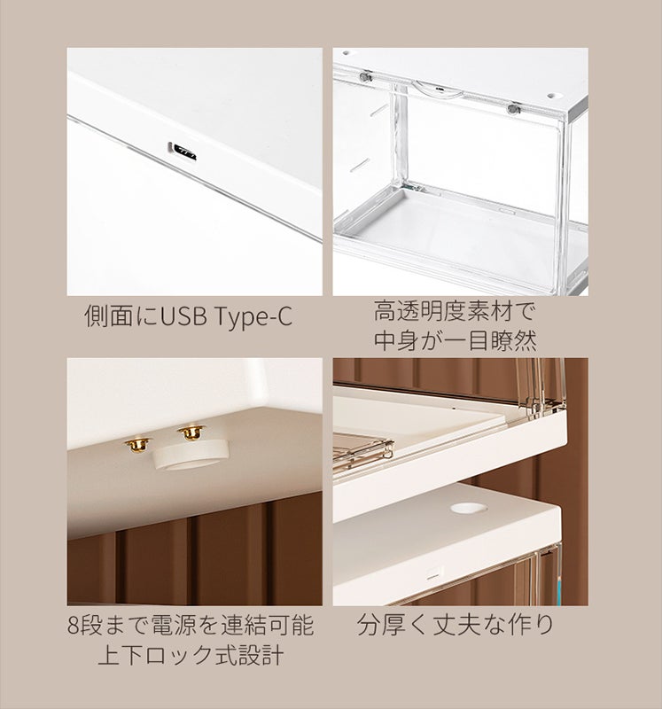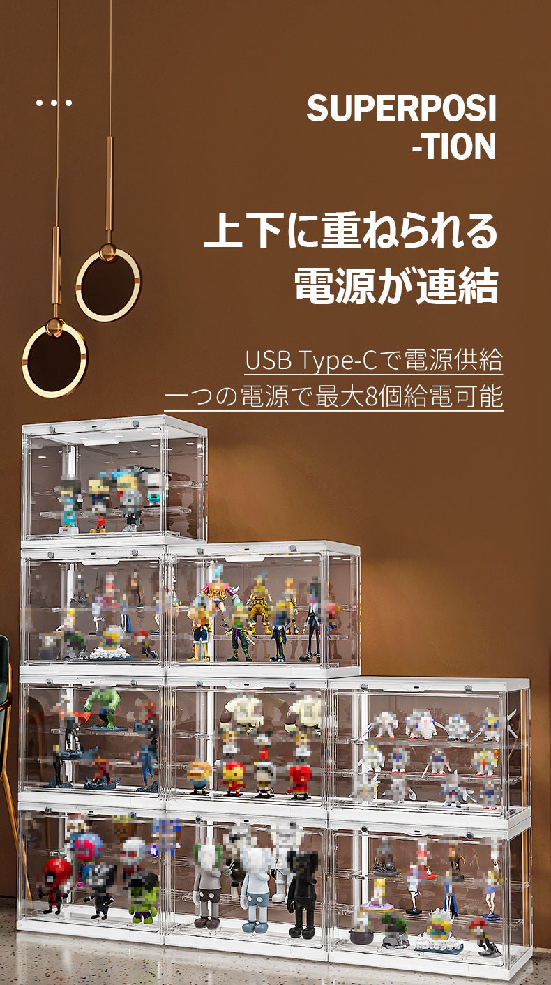 ディスプレイケース 1つにつき仕切りが3枚、USB Type-Cケーブルが1本付きます。
