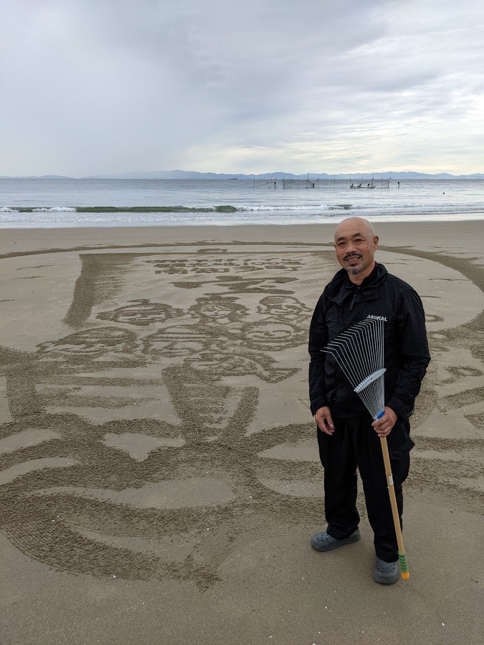 プロジェクト終了後、ご支援いただいた方の会社名(企業ロゴであったり)、名前等を砂浜絵師ジャッカル 山本さんにサンドアートで制作してもらいます!またその完成写真をお送りします!