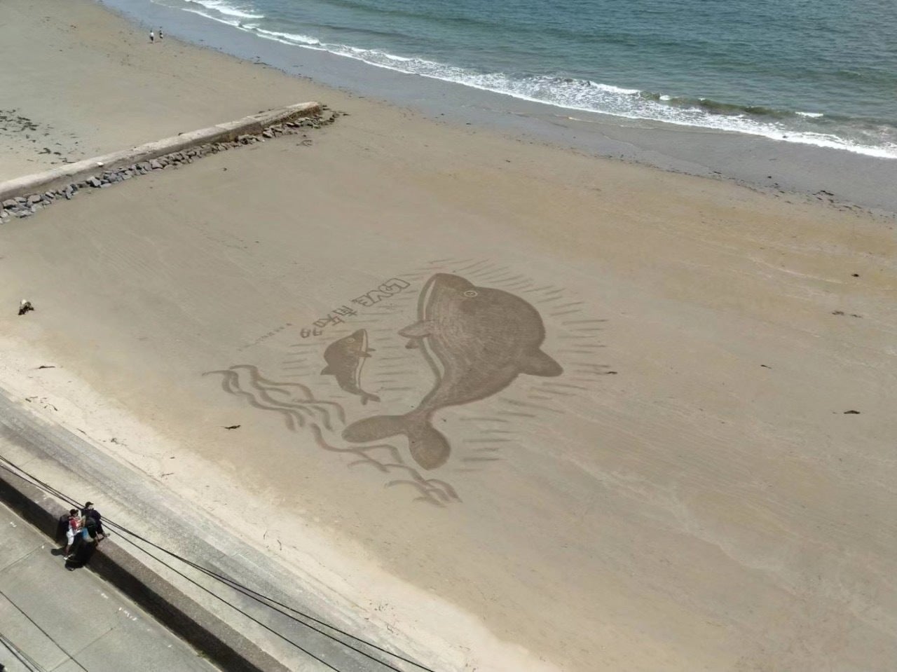 2年ほど前から砂浜に大きな絵を描いて子ども達に喜んでもらおうと
