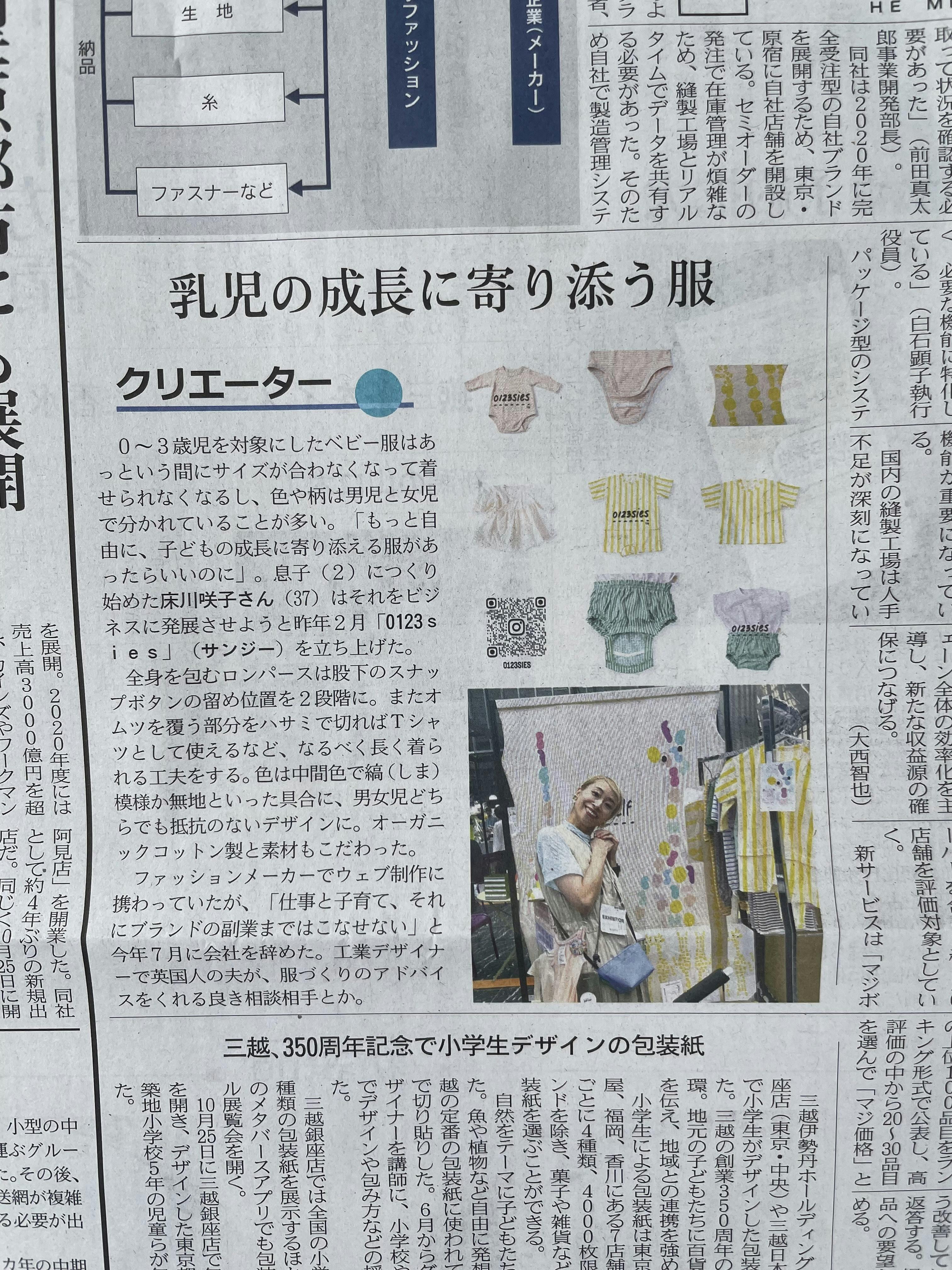 出典元: 日経MJ 「乳児の成長に寄り添う服 クリエーター」 11/6