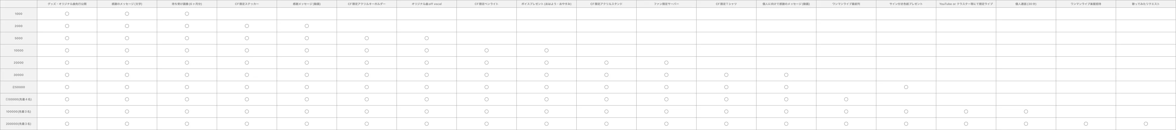 ※グレードが高いプランは、グレードが低いプランのリターン品も含みます