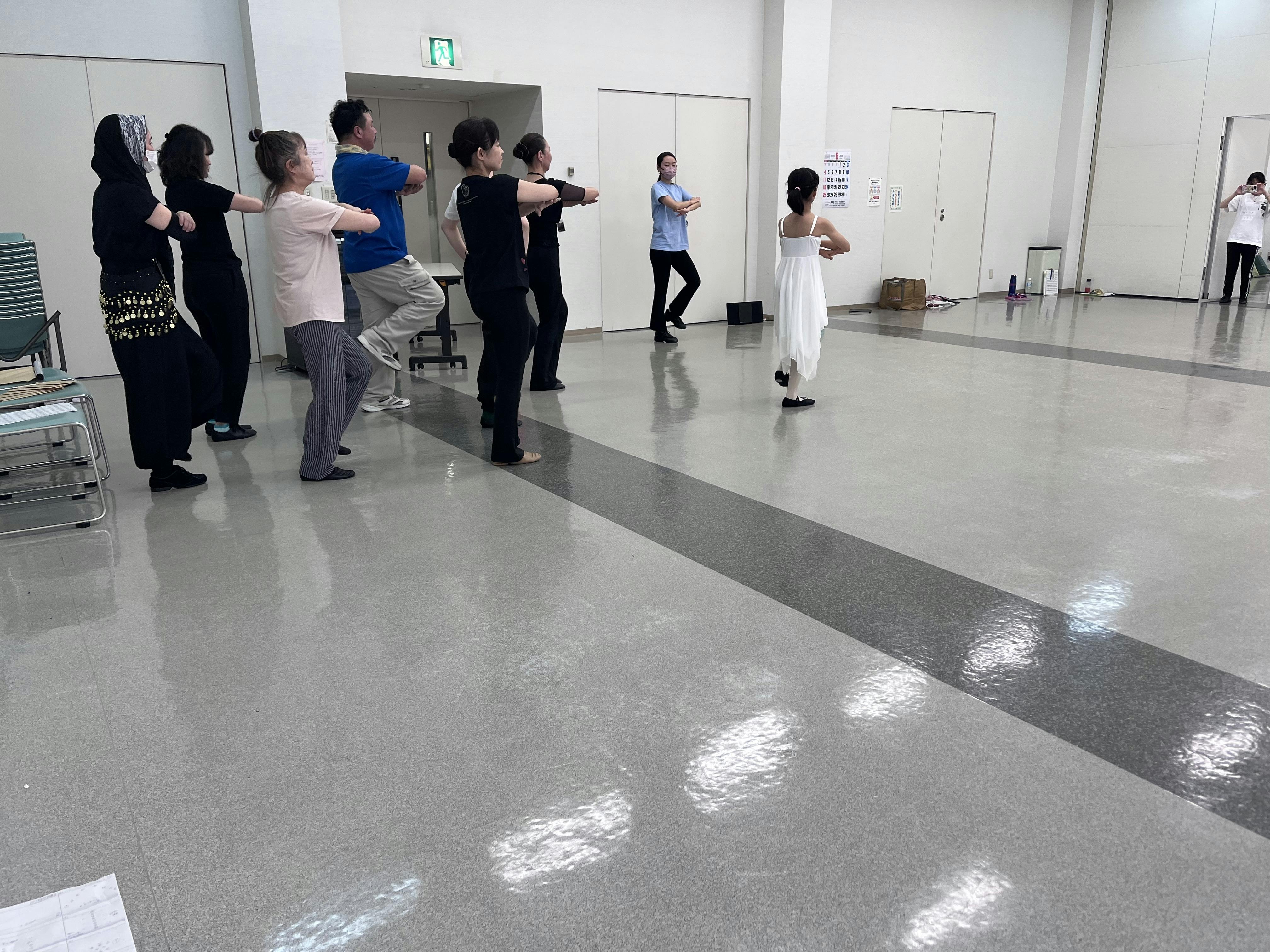 今日は「アリ王子のお通り」振り付け稽古の日。4時間のお稽古で振り入れが行われました。三曲のダンスも一通り振り付けが終わりました。