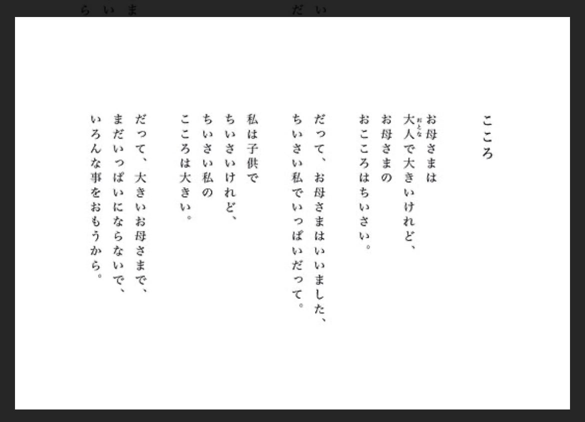 そして、母の慈愛の気持ちは体験と、金子みすゞの詩が、セリフのインスピレーションをくれました。