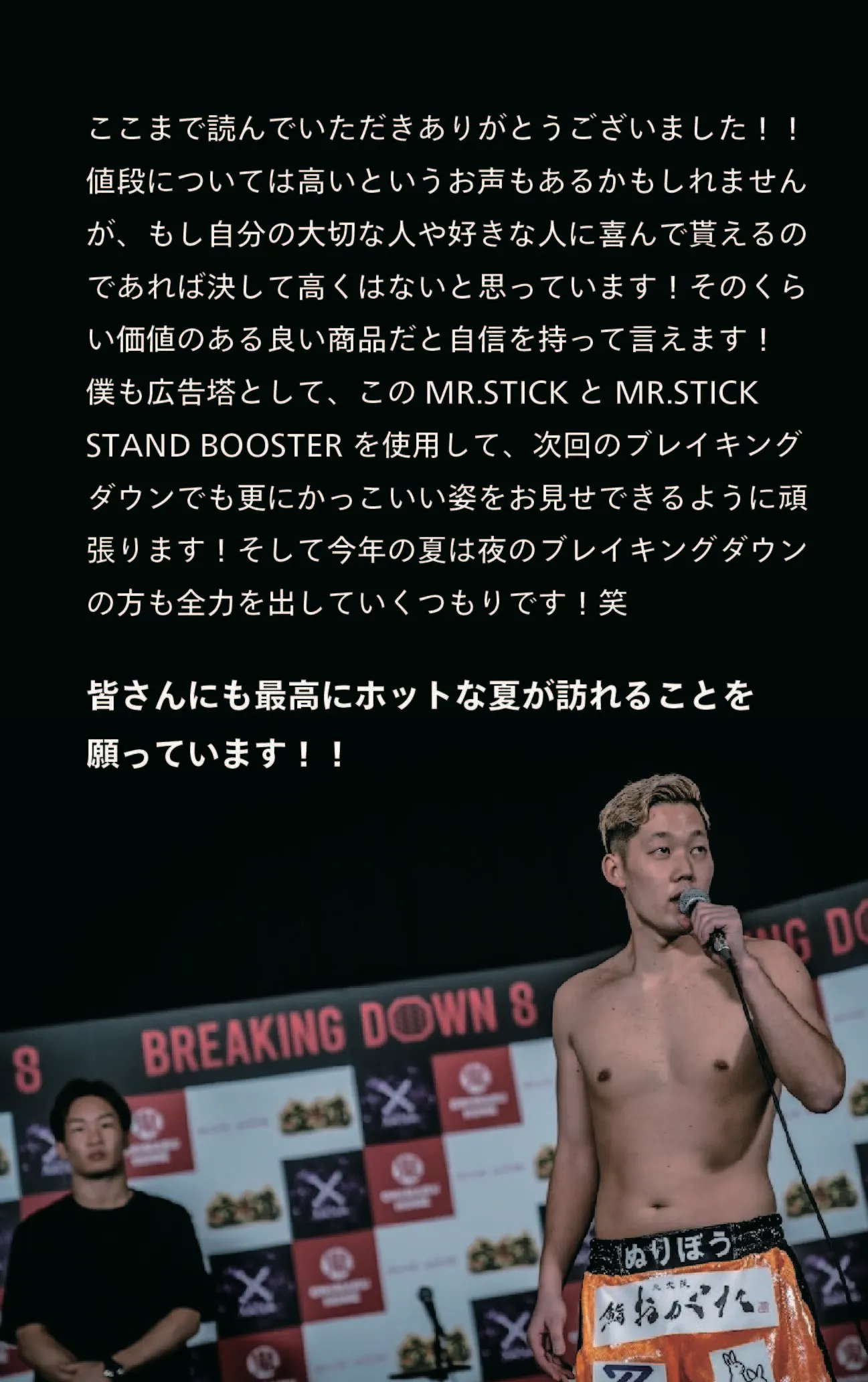 上記以外のプランかつMR.STICKが含まれるリターンを選択した方へ