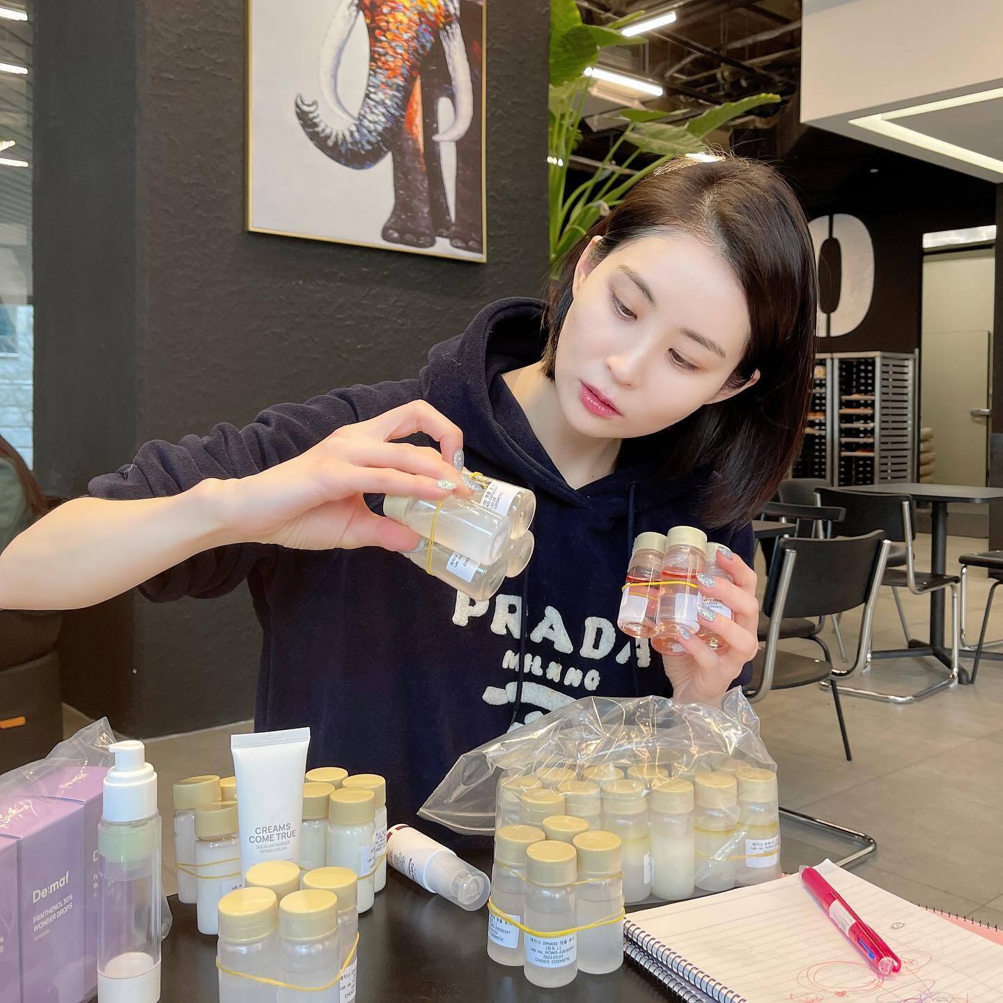 まず化粧水のベースになる成分選びやオイル種類の選定を行いました。より肌のことを考えた、敏感肌もよく使える成分でいろいろ試しました。そこから数々のパターンに分け、オイルと化粧水の配合を3%,5%,7%,10%,17%,20%,25%でサンプルを作りテストにテストを重ねました。個人でのテストで最終的にこれだ!と思った配合で数千個のサンプルを制作し、多くのユーザーからフィードバックをいただきながら、そこから改善に改善を重ねた結果物としてマイファーストセラムが生まれたのです!製品発売後もより良い製品をご提供するためにチャットでの相談はもちろん、定期的にユーザーの皆さんと会う機会を設け、今もユーザー様の生の声を聞いています。製品を作るときに普段気づかない部分までたくさんの意見をいただいているので、毎回よりユーザーのための製品として改善できました。