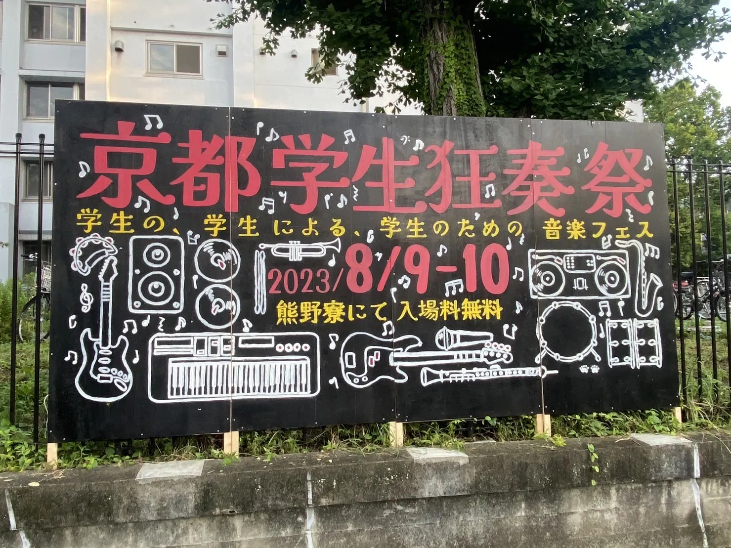 昨日、京都学生狂奏祭の開催をお知らせする立て看板を熊野寮の前に設置しました!