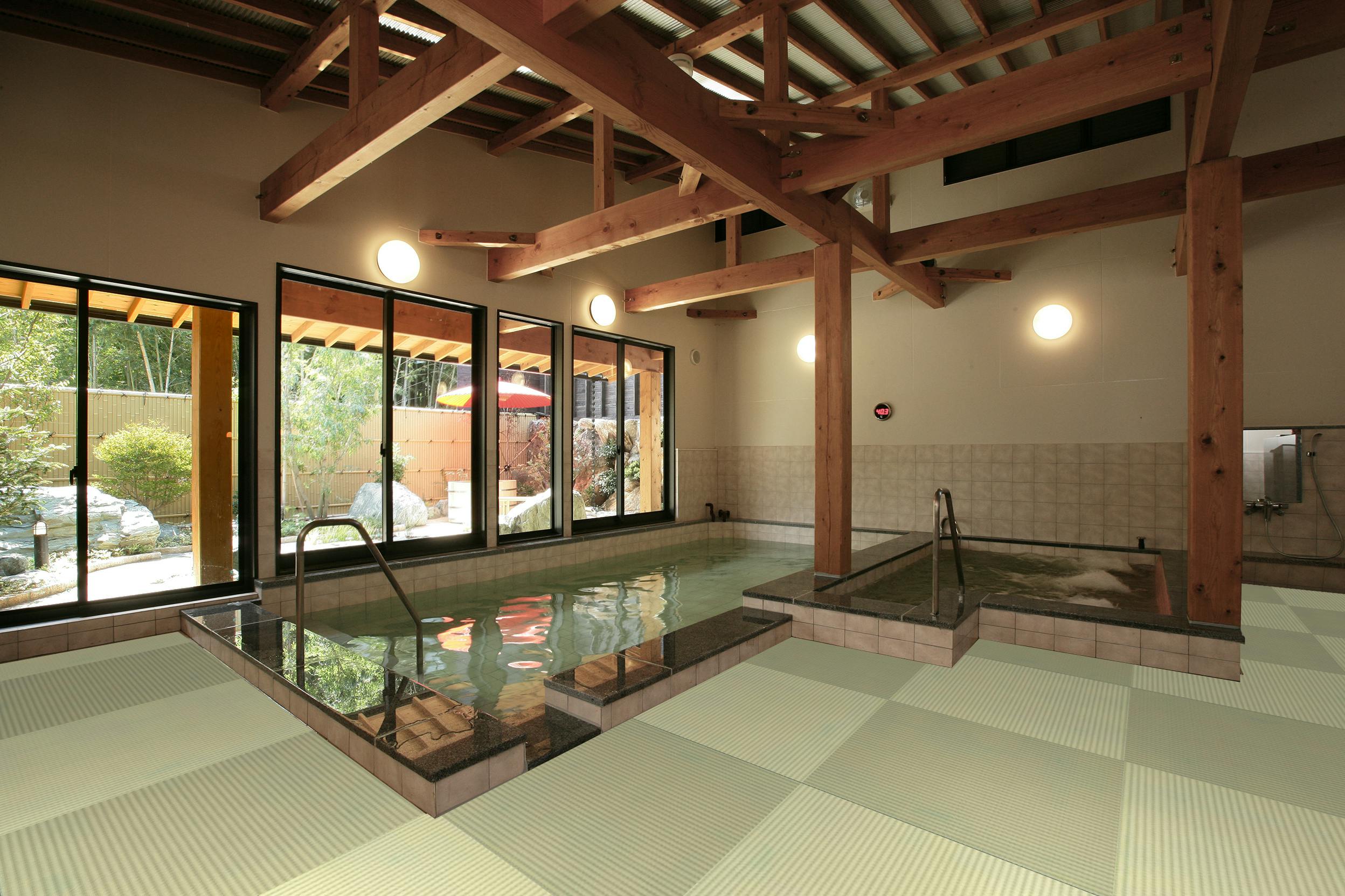 竹林を望む露天風呂やゆったりとした内湯、泡風呂、サウナ、家族風呂や畳敷きの休憩室、春にはシンボルツリーの桜、夏にはブドウ狩りが楽しめるテラスで日頃の疲れを癒して頂いており近年は県外の方々にもご来館頂けるようになりました。