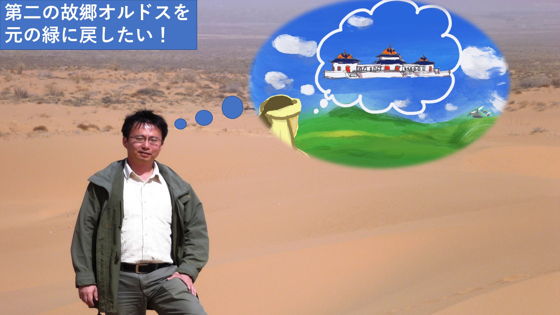 しかし行ってみるとそこは一面の砂漠でした。オルドスは砂漠化の最前線だったのです。僕自身砂嵐で死にそうになったこともあります。