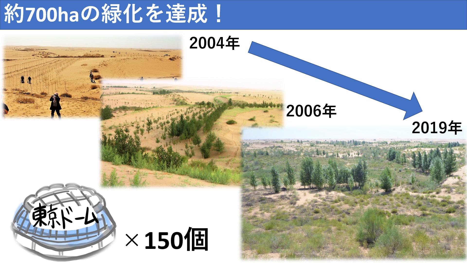 今までに東京ドーム150個分の砂漠を、緑に戻すことができました。村のお年寄りが、「私の若い頃の風景に戻ってきた」、と言ってくれたのがとてもうれしかったです。