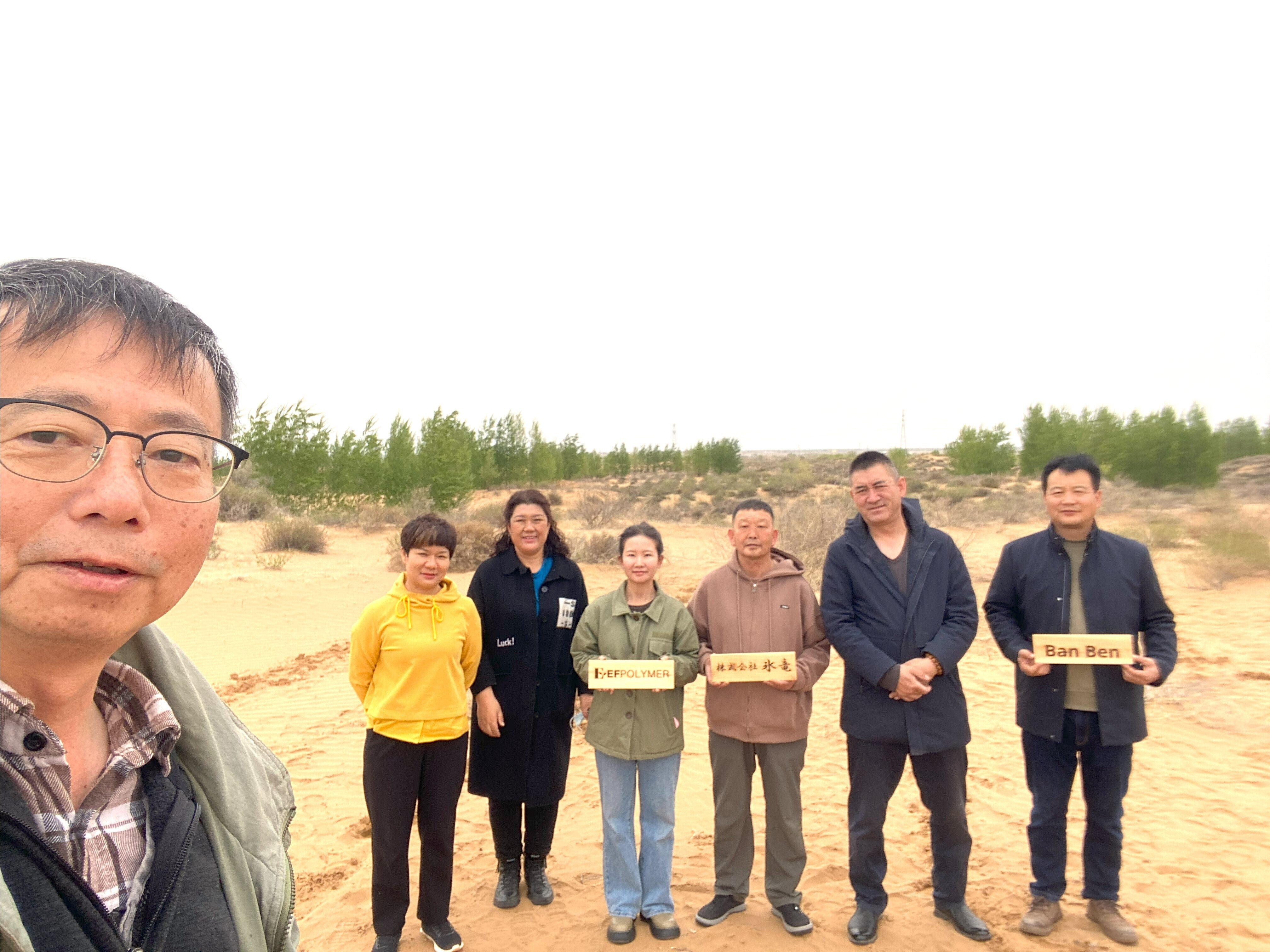 そして4月25日から1週間、オルドス出張に行きました。今回の目的は生ごみが原料で高い保水力・保肥力をもつ次世代型保水材「EFポリマー」の実証実験を行うことです。同時にコロナ禍で3年半現地に行っていなかったので、オルドスの現状確認と今後の方向性を考える旅でもありました。砂漠化した土地を緑に戻し、どうやって環境と経済の好循環モデルを創るか、多くのアイデアを得ることができました。また今年は黄砂の当たり年ということもあり、実際現地で砂嵐も経験しましたが、どうしたら黄砂を減らすことができるか、黄砂の発生源から考えてみることができました。具体的なことは今後、少しずつ実践することで示していきますが、やはりまだ何十年と続けなければならないと決意を新たにしました。