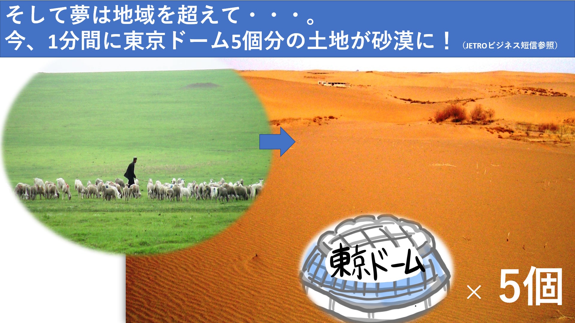 今地球では1分間に東京ドーム5個分の土地が、砂漠になっています。