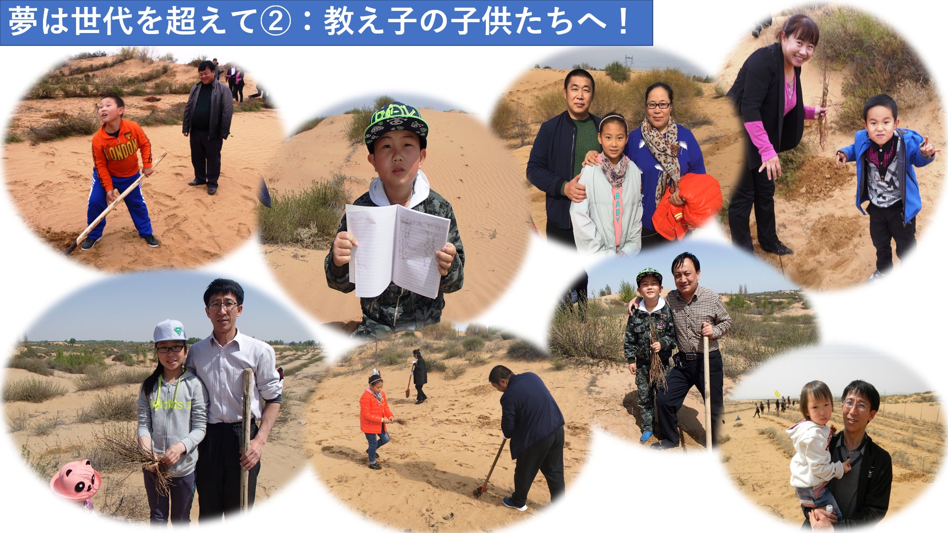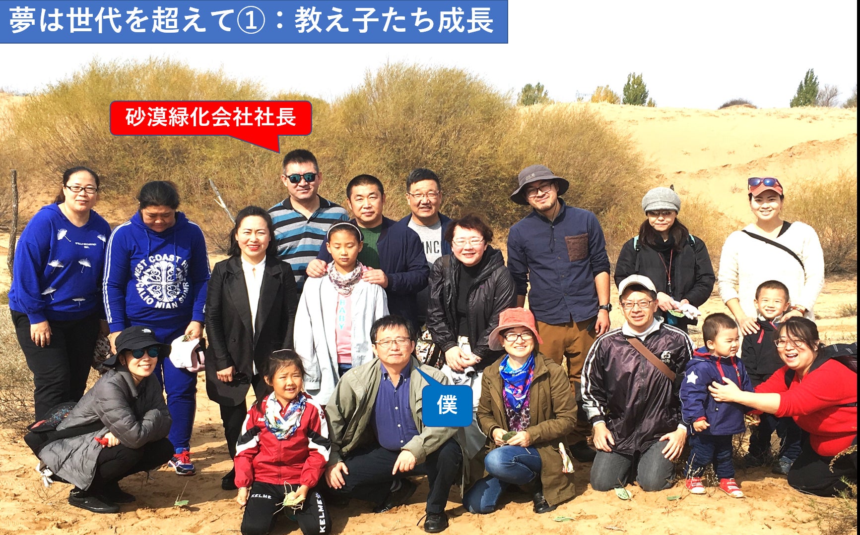 またこの「夢」は世代も超えていきます。30年前高校生だった教え子たちは今や40代。オルドスで砂漠緑化の会社を立ち上げた者もいます。