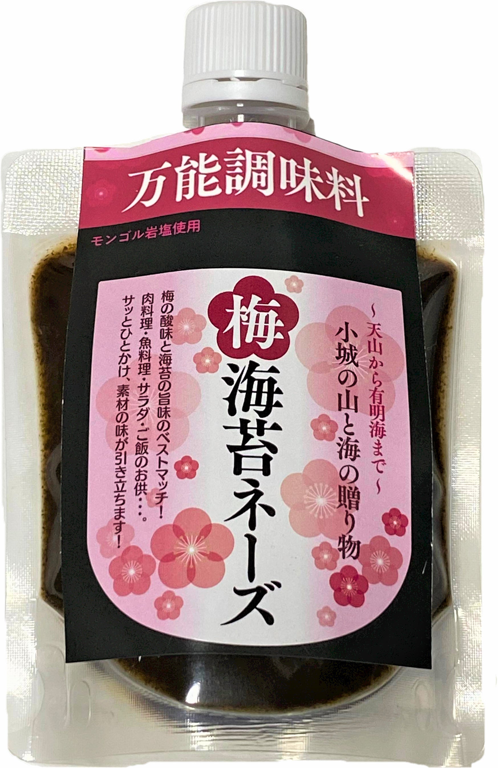 天山から有明海まで・・・、山と海の恵みを美味しく堪能できる商品を開発しました!清流食産プロデュース。その名も「梅海苔ネーズ」。小城牛尾梅林の梅と有明海の海苔とモンゴルの塩を美味しく混ぜ合わせた万能調味料です。