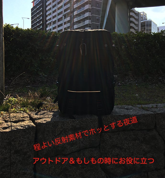 もちろんアウトドアにもお使っていただけるバッグ、もしもの時の防災バッグもご利用できたら幸いに思い、開発を取り込んでまいりました。一つでも防災バッグとして、貴重な書類、通帳、パスポートなど以外に、防災道具、お水、着替などをお好みで備えとして、準備して頂きたい、このような思いで、商品化して、ご紹介させて頂いております。