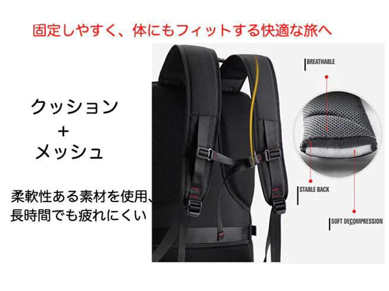 固定ベルトを採用し、キャリーオンバッグとしてスーツケースに固定でき、肩の疲れを分担できる快適なサポート、出張や旅行時などで便利に活用いただけます。