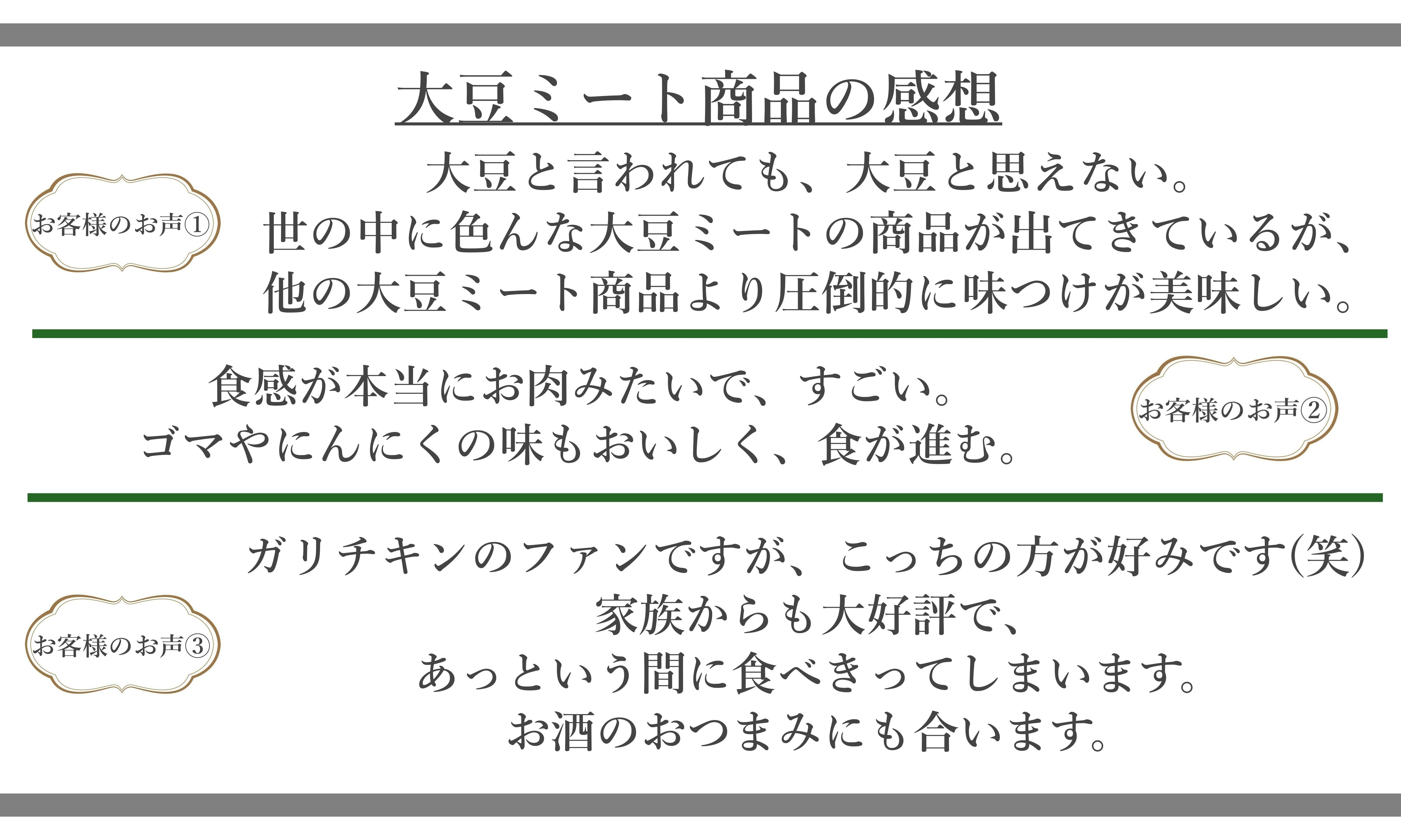最近は、いろんなお店でお肉に見立てた様々な大豆ミート商品がありますが、当店の大豆ミートは他にはない旨味と食べ応えで