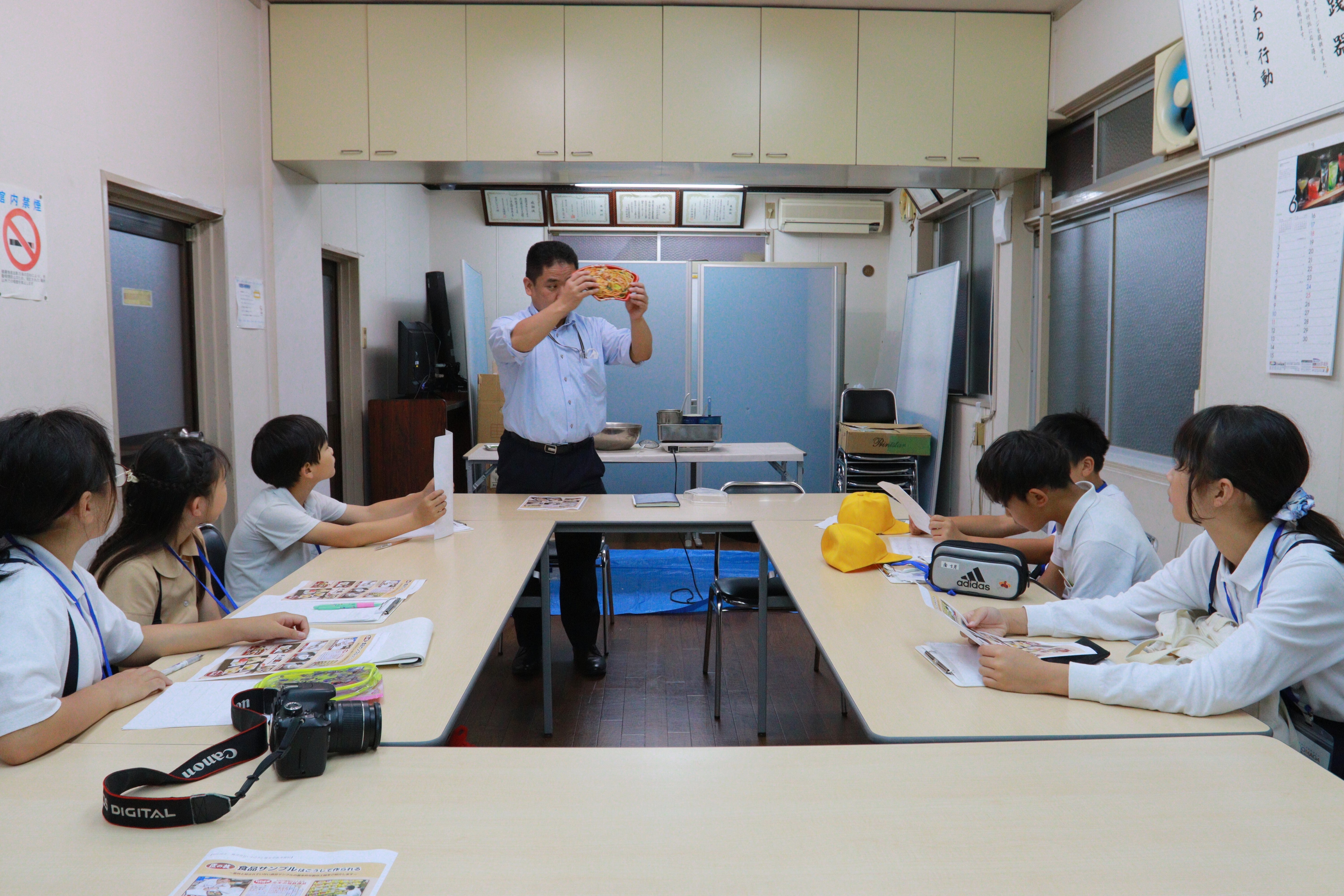 まるでレストラン。工房や職人さんのデザインや製作を見学して、子ども記者も目を輝かせていました。実際に食品サンプル作りも体験しましたよ!