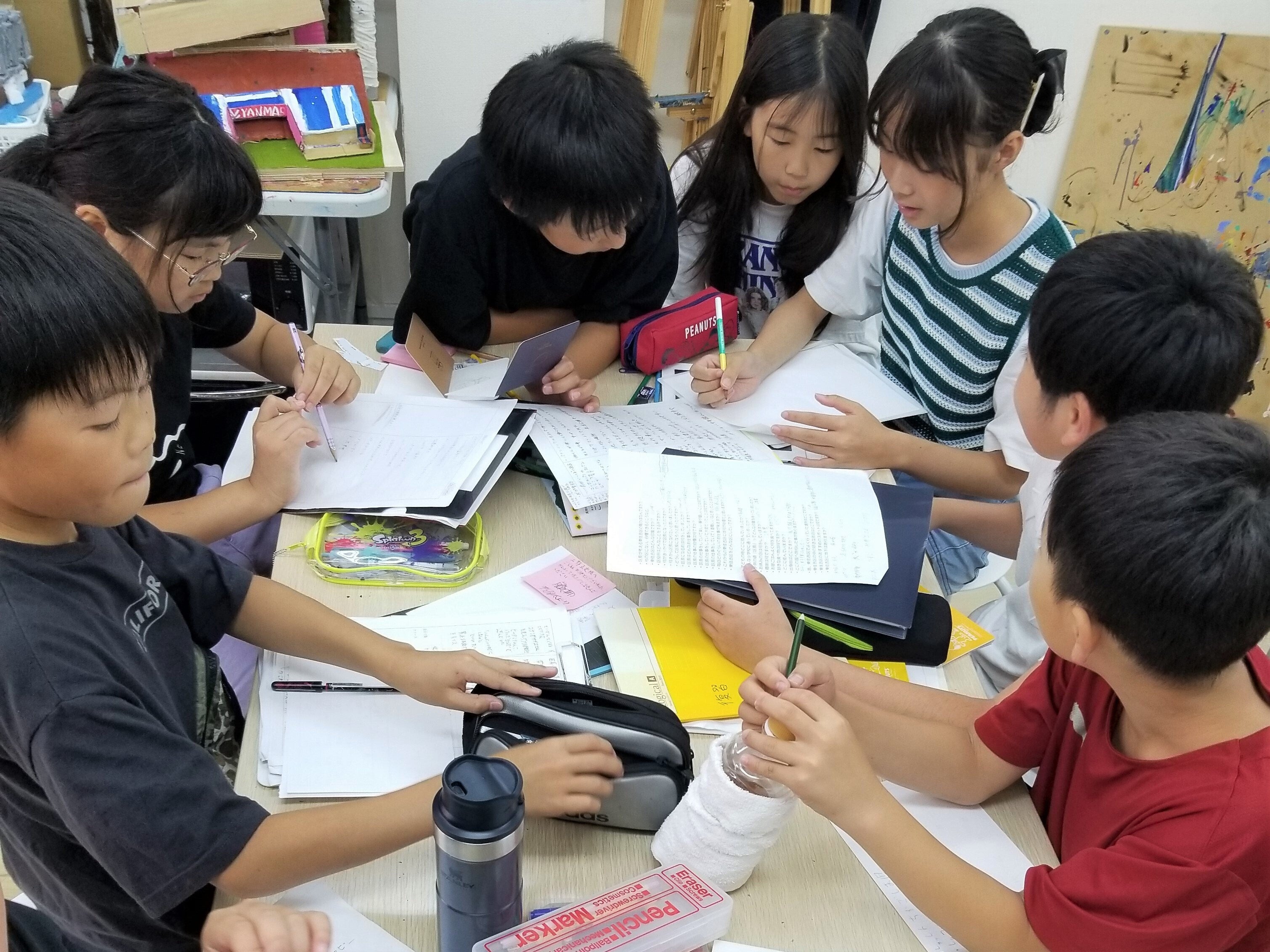 どこが1番伝えたい部分か、どうすればより読者がイメージしやすい表現になるかを考えたキャプションや原稿の補強に、自分らしさを表現したイラストにデザイン。それぞれ6個7個あるタスクを「目標の時間までに終わらせよう!」と計画的に使命感を持って、そして変わらず賑やかに!見事やり遂げ雑誌完成しました。そして最後はお楽しみのピザパーティー!