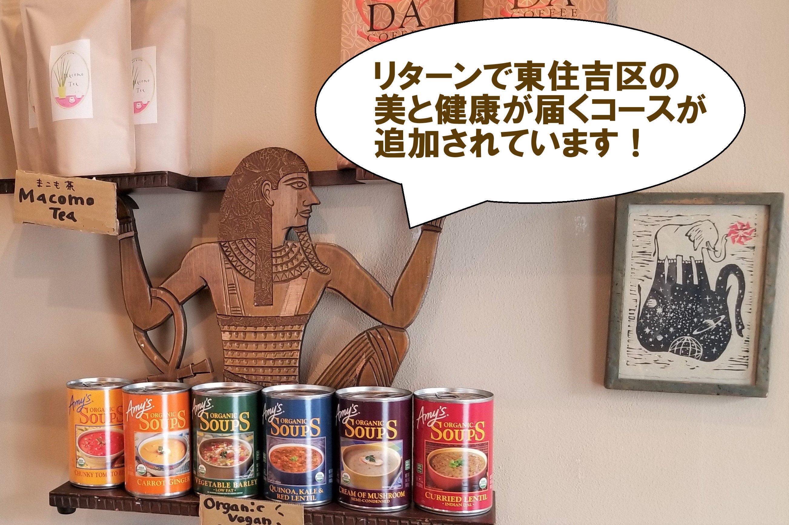 皆様たくさんのご支援ありがとうございます!あと約20日よろしくお願いいたします。リターン(10,000円)に東住吉区の美と健康お届けするコースが追加されました。地域情報誌うっとこに掲載されるお店(ゴールドファラフェル・ピンポン食堂)より美と健康をチョイスしまして、大麦とライ麦を焙煎した『インカコーヒー』と、近年スーパーフードとして注目されていて縄文時代から飲まれている『まこも茶』をお届けします。雑誌を見ながら心も体もパワーアップ!?◆まこも茶(真菰)1.5gティーバッグ×25※まこも葉は縄文時代より『神が宿る草』と言われ薬草として重宝された、食物繊維と栄養素の宝庫。※1ティーバッグで500mlペットボトル1本分ができます。※原産国:日本(無農薬)※兵庫県伊丹市の農家『プカプカ』さんが無農薬で育てて作った真菰です!◆インカコーヒー(ノンカフェイン)瓶・粉末100g※インカは大麦とライ麦を焙煎して粉末にした穀物コーヒ。※添加物、甘味料も不使用。穀物の香ばしさとコクが楽しめます。※賞味期限36か月。ただし開封後出来るだけ早く。※原産国:ポーランド10,000円ご支援頂いている方で、こちらのコースにご変更ご希望ございましたらご連絡くださいませ。クラウドファンディングは7月7日が最終日となります!引き続きご紹介や拡散よろしくお願いいたします。☆ご注意☆・原材料及び添加物等の食品表示はお届け商品のラベルに表記されます。商品開封前には必ずお届けのリターンに貼付されたラベルや注意書きをご確認ください。・実際にお届けするリターンとパッケージ等のデザインが異なる場合がありますので、あらかじめご了承くださいませ。