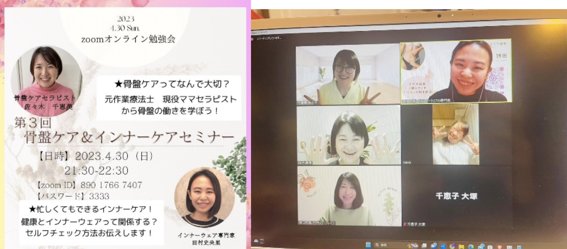 4月から骨盤ケアの重要性を伝える「オンラインセミナー」を月2回のペースで開催