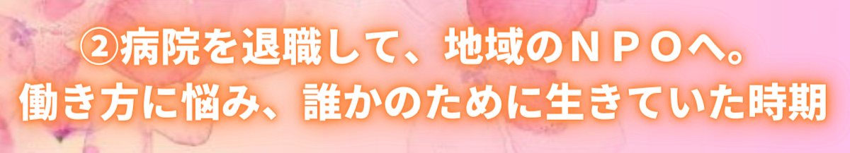 ②病院を退職して、地域のNPOへ。働き方に悩み、誰かのために生きていた時期