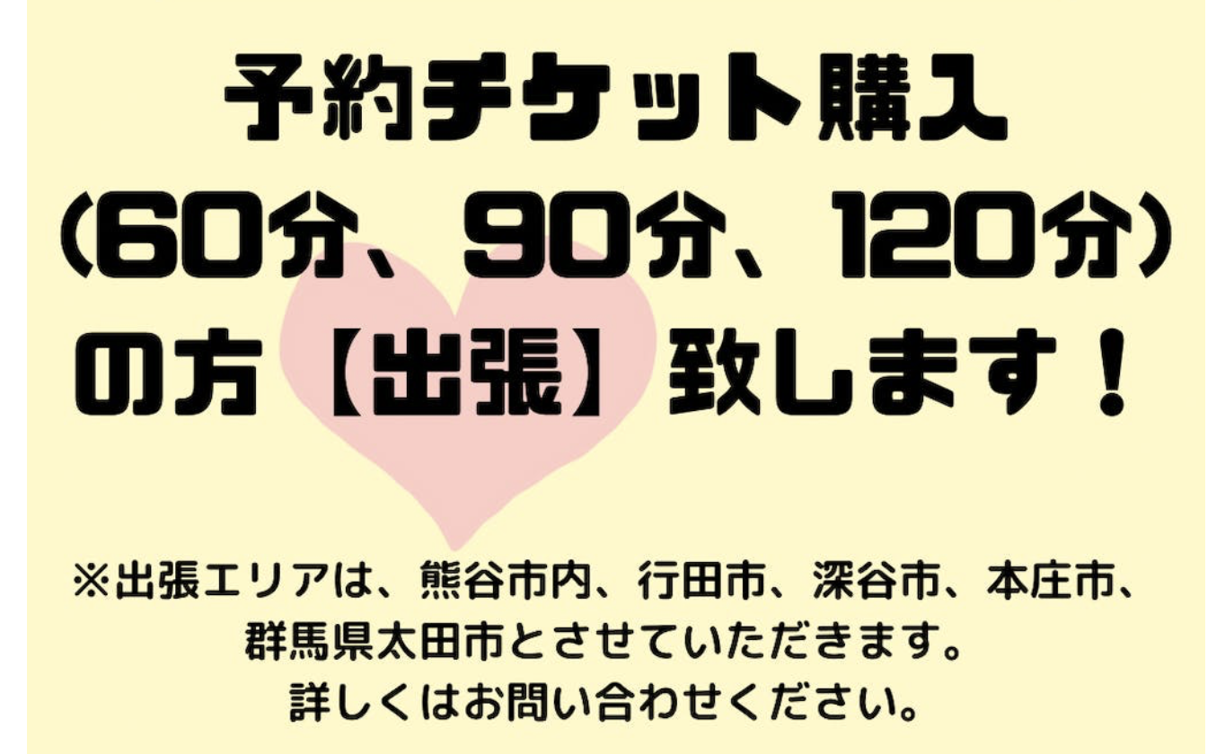 骨盤ケア予約チケット(60分、90分、120分コース)購入の方、出張します!