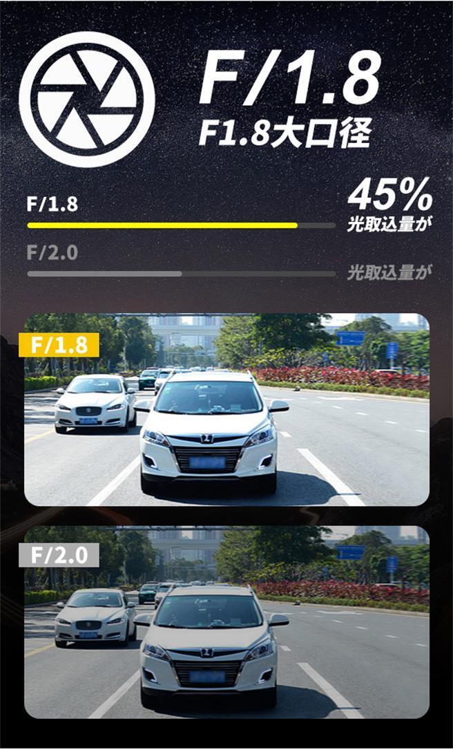 F2.0に比べ光取込量が45%多く、被写界深度の向上、低照度下での画質向上が可能となります。