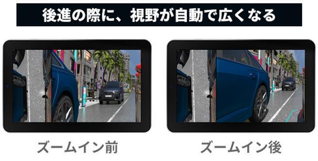②自動的に角度を変える超広角レンズで、バックやコーナリング時にドライバーをサポートします。