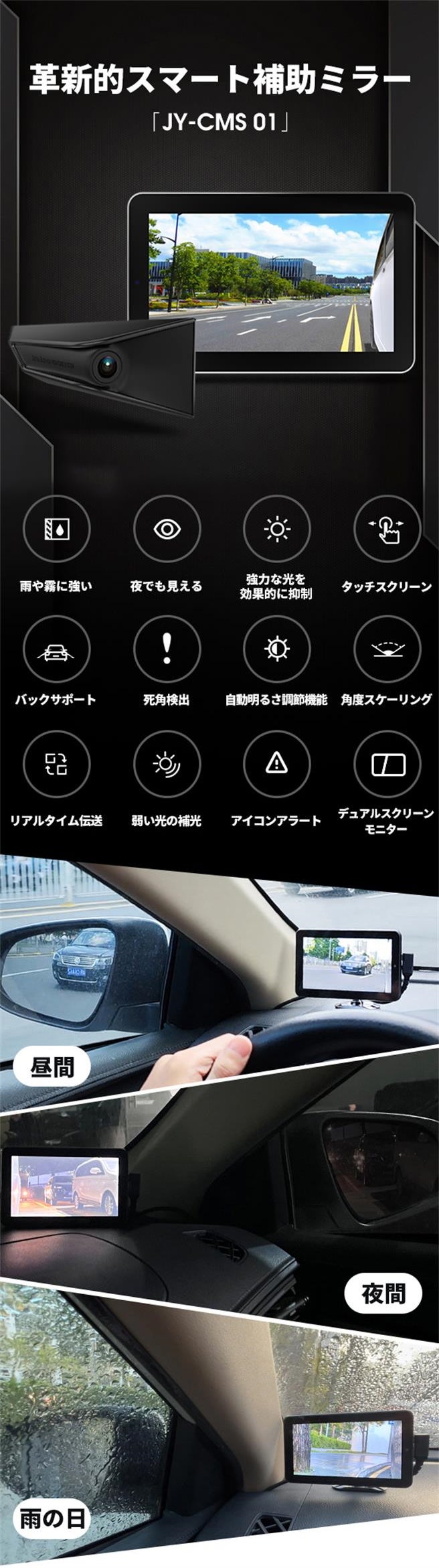 革新的スマート補助ミラー「JY-CMS 01」の特徴:
