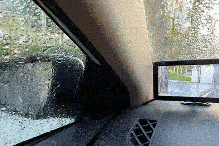 カメラはNCVMナノ疎水性フィルムプロセスを使用し、水が溜まりません。革新的スマート補助ミラーの表面はIP69Kハイレベル防水コーティングであり、水滴は一切つきません。大雨による視界不良がなく、大雨でも透明度が保たれるので、雨の中のお出かけでも安心です。