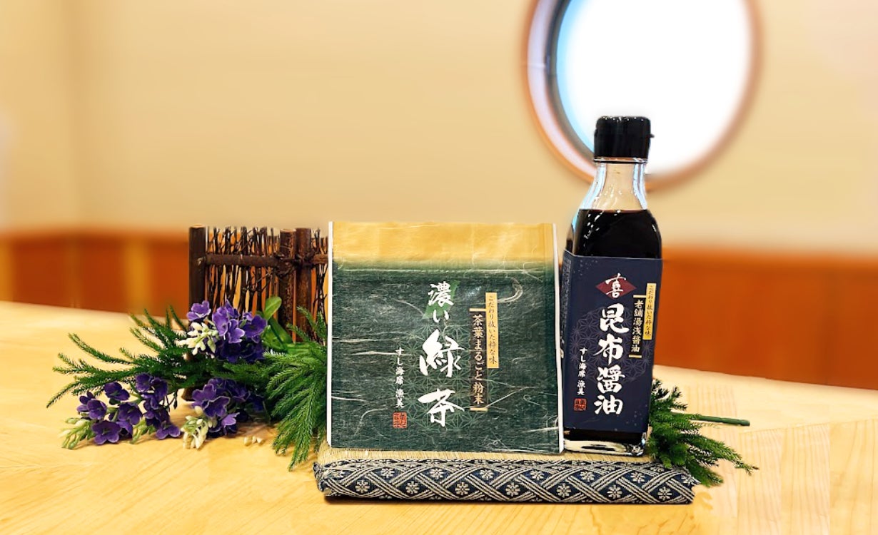 すし海席漁美で使用している、寿司のための昆布醤油と、寿司や魚料理に合う緑茶は、「原材料からこだわり健康にも良く、美味しく実店舗で10年愛された職人の味」で寿司屋ならではの、厳選された素材と伝統の製法が融合した逸品です。和食が好き、食にこだわりがある方、健康に気を使われる方のための商品です。