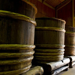 「寿司のために作った昆布醤油」は、安心安全の国産にこだわりました。この国産の丸大豆をつかった醤油は、日本で流通している醤油のわずか3%しかありません。また、木桶の醤油は全体の1%でとても希少な醤油です。日本における醤油発祥の地の一つとして知られる和歌山県『湯浅醤油』は、数多くの有名料理店にも選ばれている高級醤油です。ゆっくりと長期間、発酵・熟成させた技法で昔ながらの天然醸造醤油。木桶で職人が丁寧につくるお醤油は、味も香りも深みが違います。一年ほどで作ることも可能ですが、このお醤油は純粋な香りと味にこだわり、さらに長い歳月をかけ熟成させました。