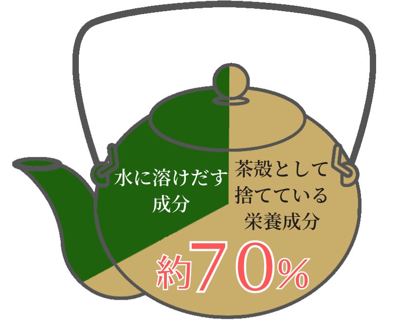 残り70%は茶がらに残っており、茶葉に含まれるβ-カロテンやビタミンE、食物繊維などの栄養成分を捨てていることに!(>_<)